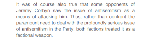 This seems to repeat the age old mistake I warned about earlier of seeking to second guess motives. Did opponents of Corbyn use the use of antisemitism to attack him or were they his opponents specifically because of issues like this? Note, that whilst Forde believes that antisemitism was being weaponised, he considers that this was happening within both factions.