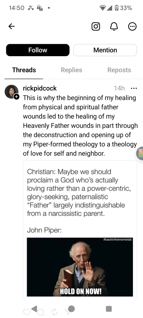 The other reason as to why this is such a bad take is that, as is so sadly, far too often a bad take is that it doesn’t even begin to come close to an accurate reflection of Piper’s theology. Remember that the foundation of Piper’s theology is of a happy God, a sovereign God who does not need to strive to attain glory for himself, he is untouchable and without rival. You might say that bringing glory to himself is just what he does, it is unavoidable. It would be impossible for God not to take delight and pleasure in himself. This God then is one whose joy, love and goodness overflow into creation and into the Gospel so that what we do is simply enjoy and delight in that overflow, which in turn cannot help but bring him glory.