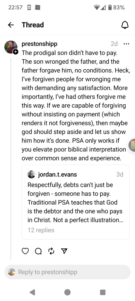 So, even if it doesn’t matter if this one parable doesn’t point us towards atonement and specifically PSA, it is arguable that in fact it does.