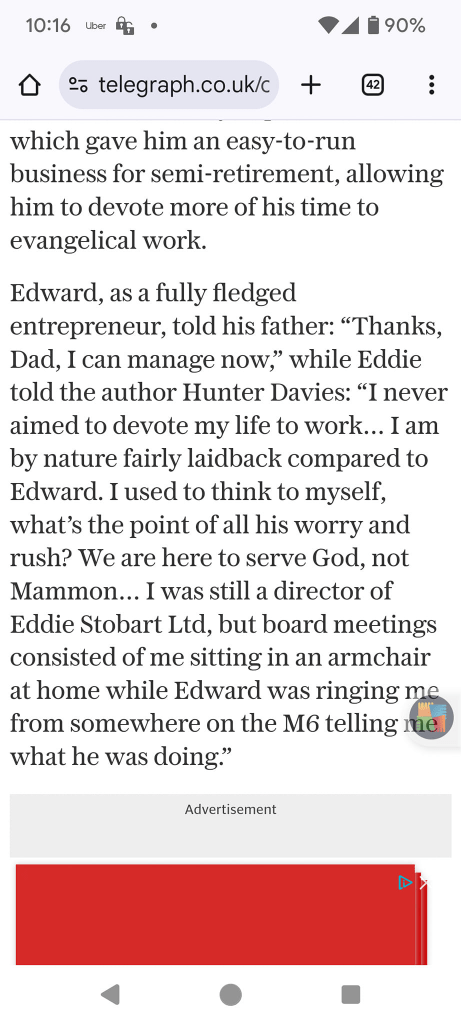 Eddie Stobart clearly was passionate, there were things that were important to him in life, just not the same things as his son who sadly died in his mid-fifties. This quote is telling.