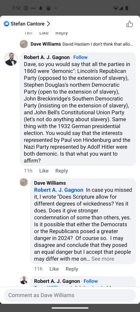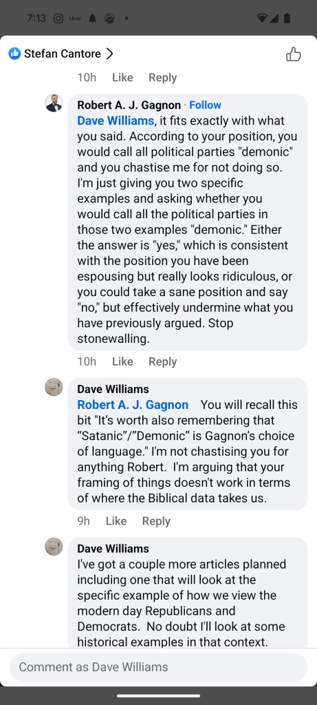 In my engagement with Robert Gagnon about Christian perspectives on US politics, we had the following interaction.