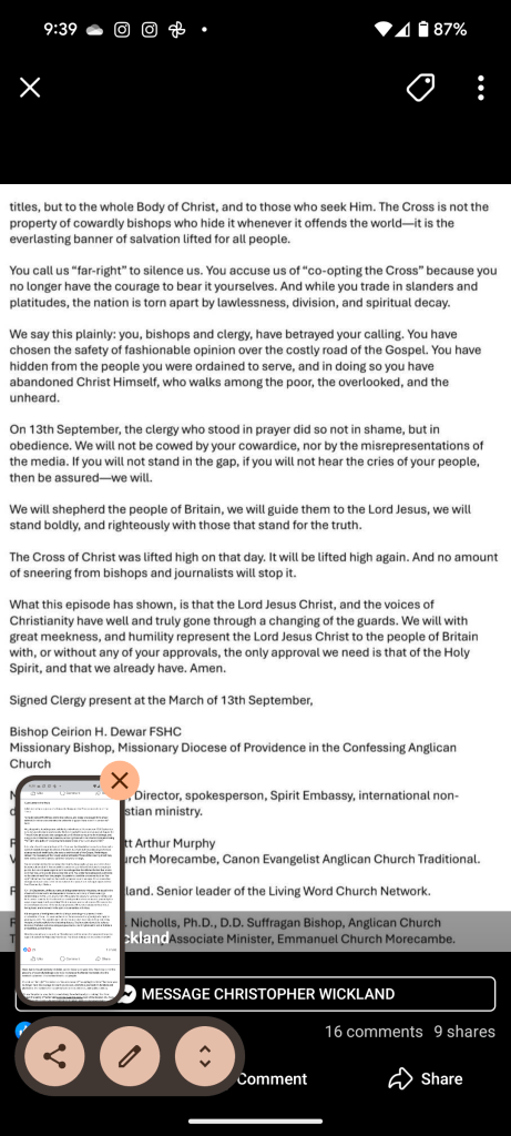 And notice too that this is not just an attack aimed at clergy they disagree with, not just Aldi at those of us who did not sign a specific letter but have spoken up against the false god and gospel of ethno-cuktural nationalism, it is an attack on a newspaper, an attempt to intimidate and silence a free press.